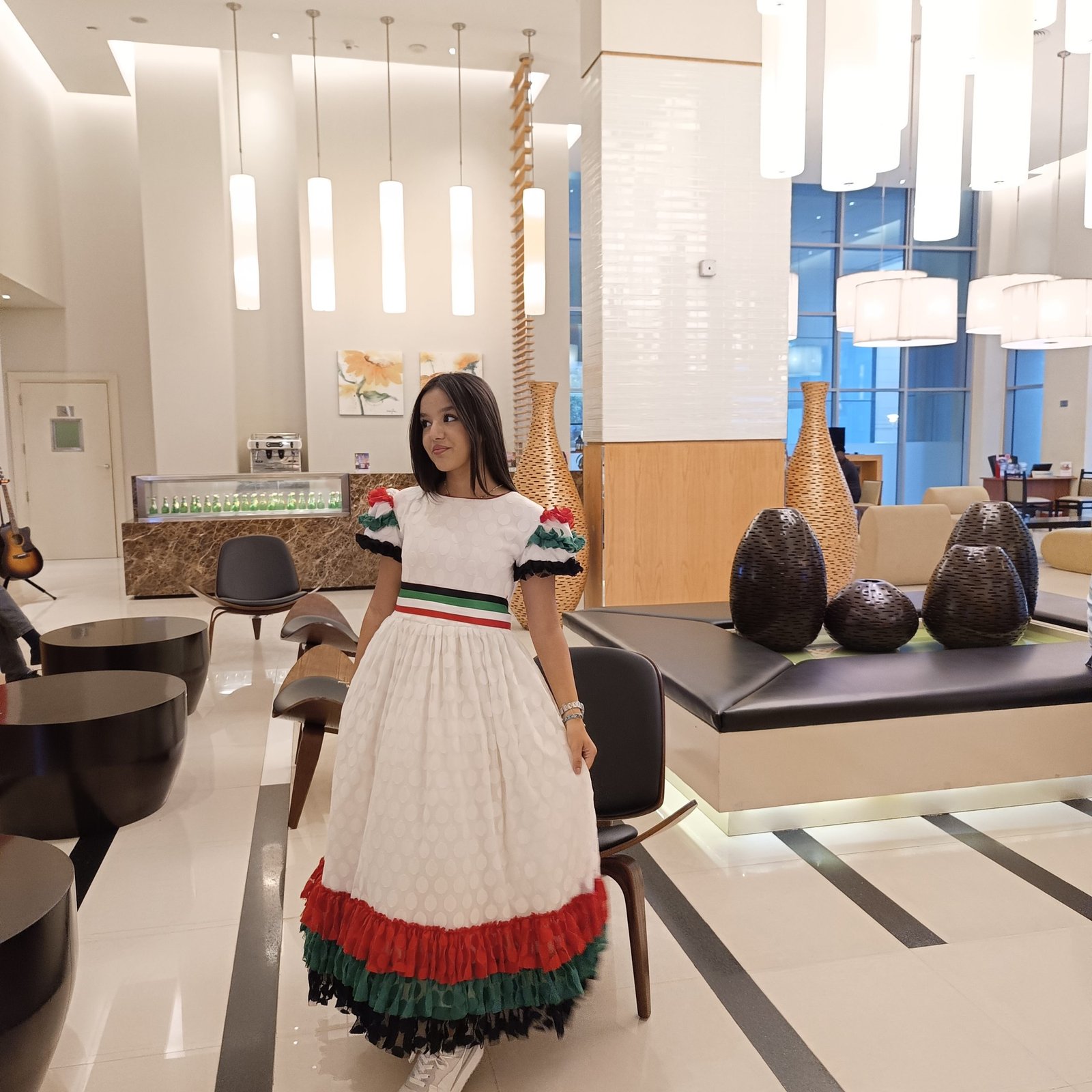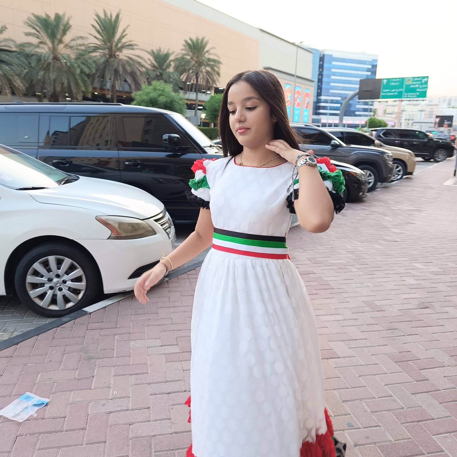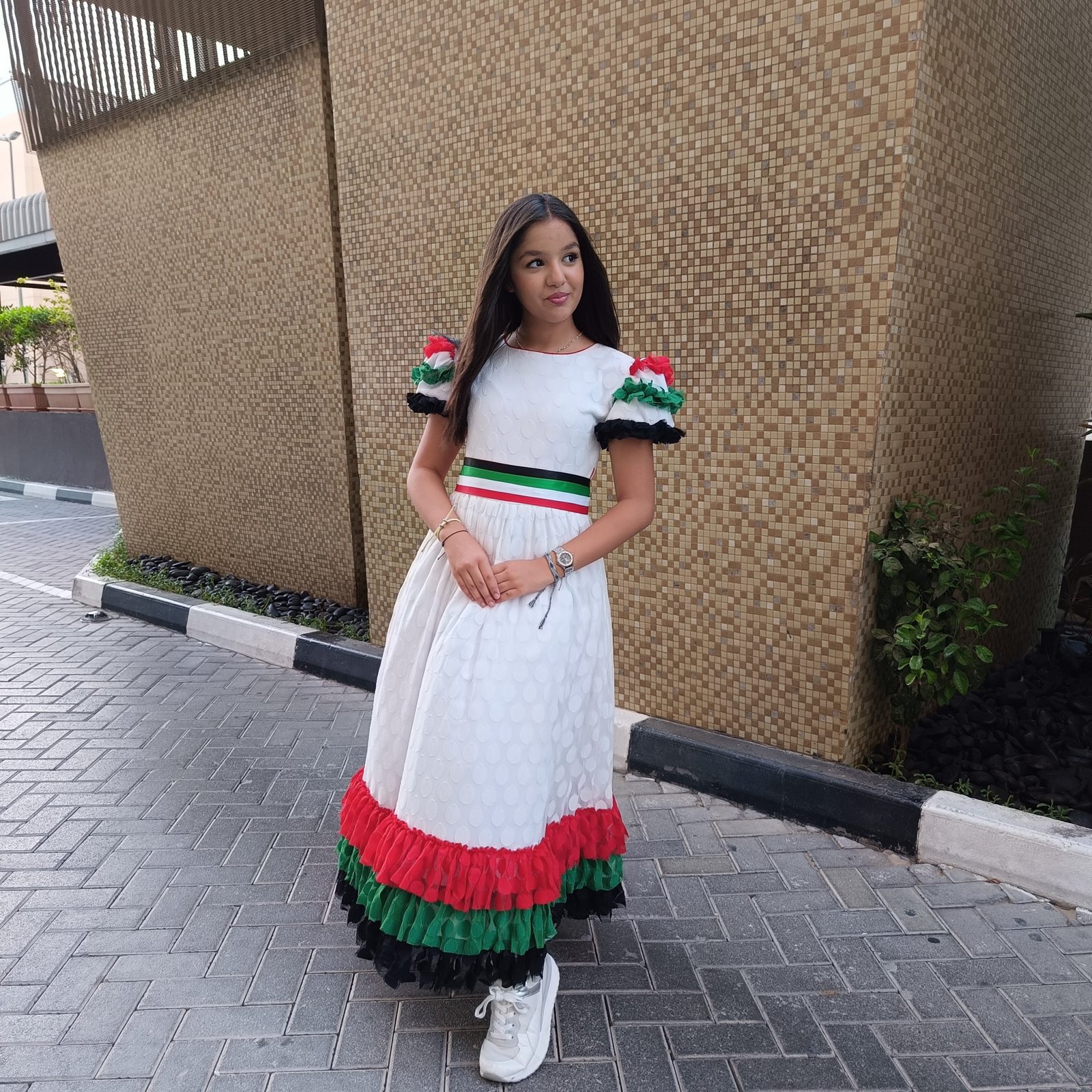 فستان العيد الوطني الاماراتي، كما يمكن استعماله ك فستان ليوم العلم الاماراتي، وحفلات المدارس التي تستخدم ملابس اليوم الوطني للامارات، أيضا للمناسبات الوطنية التي يلبس فيها فساتين اليوم الوطني الاماراتي، او وشاح العلم الاماراتي، مستلزمات و ملابس اليوم الوطني الامارتي من لامورا صممت بعناية لتتوافق مع قيم ملابس العلم الامارتي، وتم مزج الالوان في ملابس يوم العلم الامارتي لتلائم الأعراف والتقاليد الاماراتية، كما نوفر جلابيات العيد الوطني الامارتي، وجلابيات يوم العلم الامارتي بالجملة للمدارس والتجار من موقعنا لامورا دوت شوب
