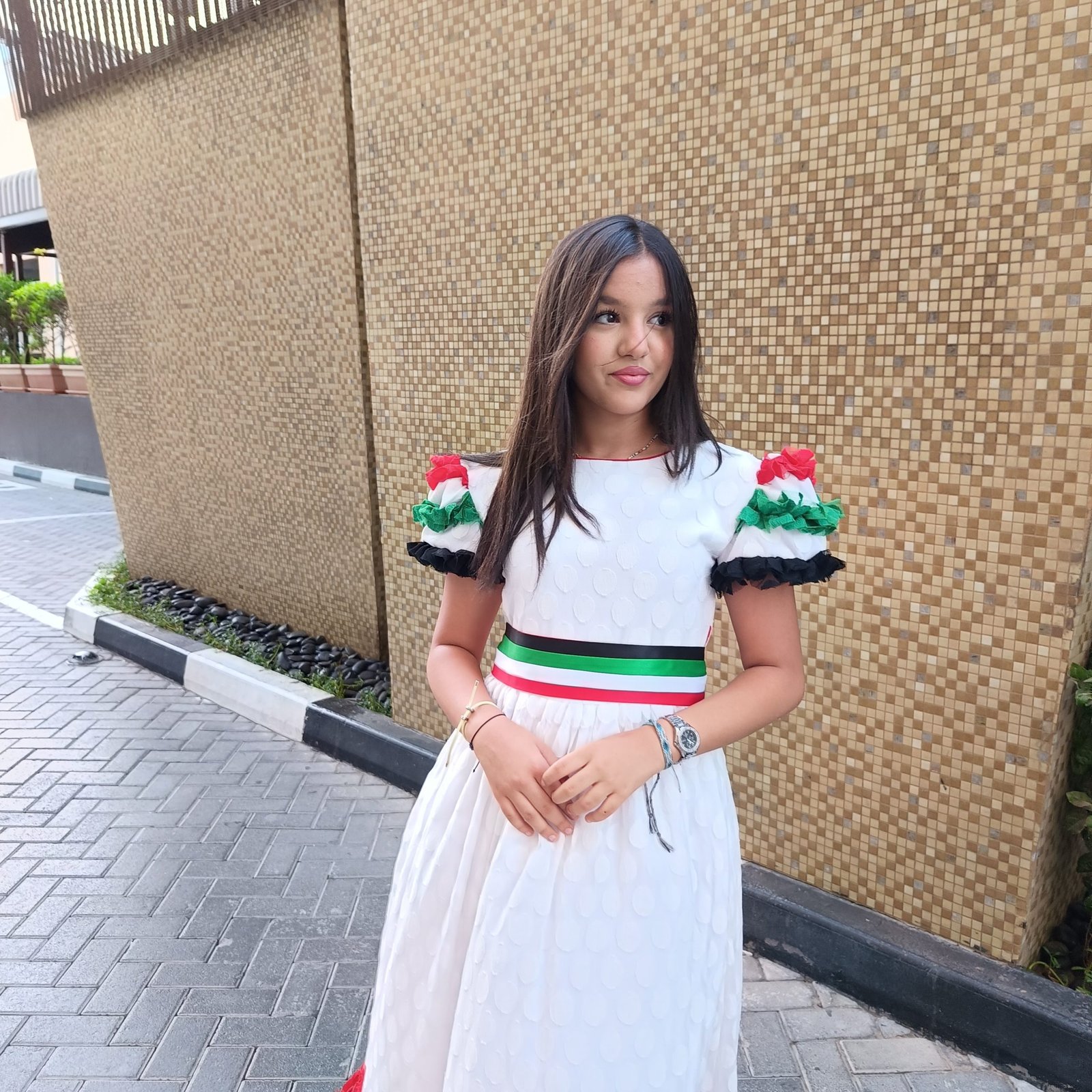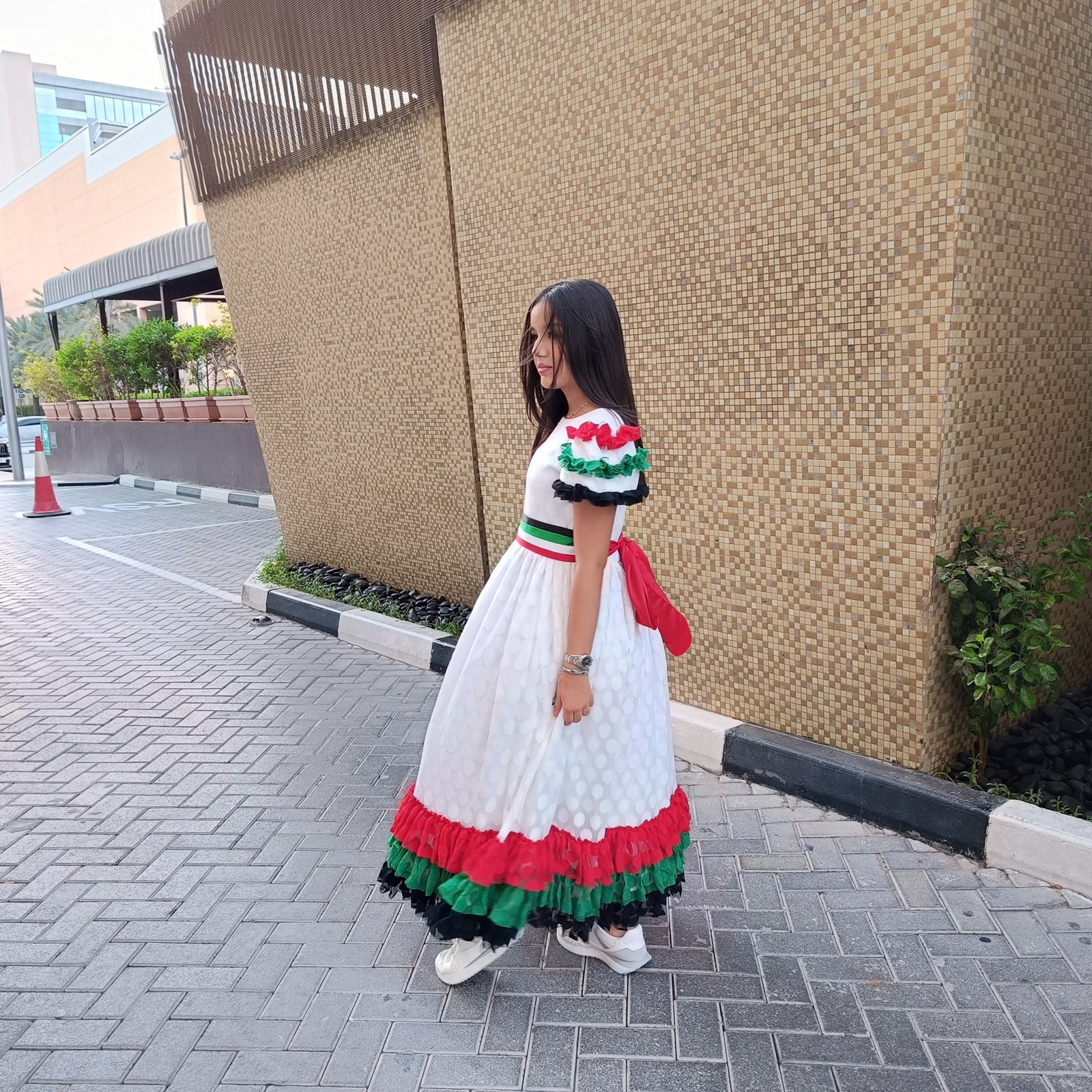 Dot Tulle UAE National Day Dress For Girls 2024 , can be used for National Day and for school parties that use UAE National Day clothing, also for national occasions in which UAE National Day dresses are worn, or the UAE flag scarf, or uae flag day t’shirt, Or uae national day vest , UAE National Day supplies and clothing from Lamora are carefully designed to be compatible with… The values of the uae flag clothes, and the colors were mixed in Emirati Flag Day clothing, to suit Emirati customs and traditions. We also provide uae National Day jalabiyas, and Emirati Flag Day jalabiyas، in bulk for schools and merchants