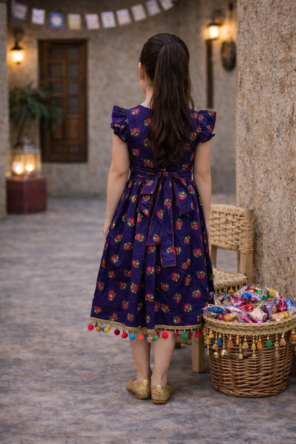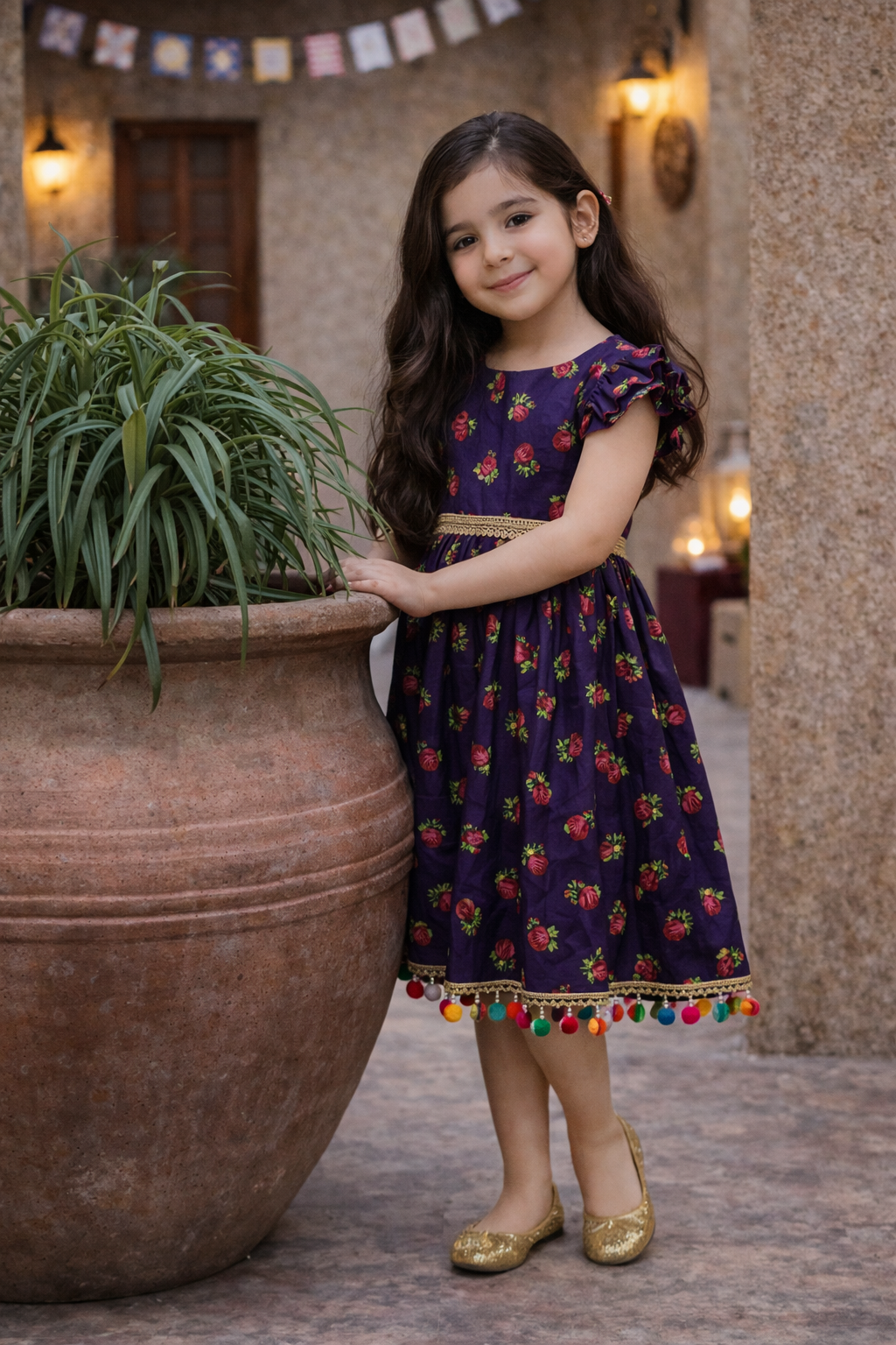 Girls Hugallaila Dress | Traditional Dress | Dark Purple With Golden Lace فستان حق الليلة