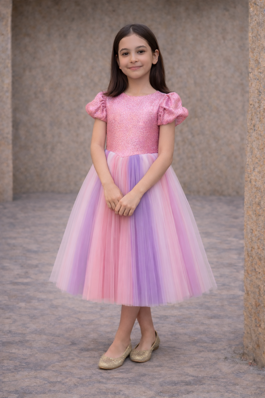 Girls Party Dress Blue With Pearls & Tulle | فستان بنات