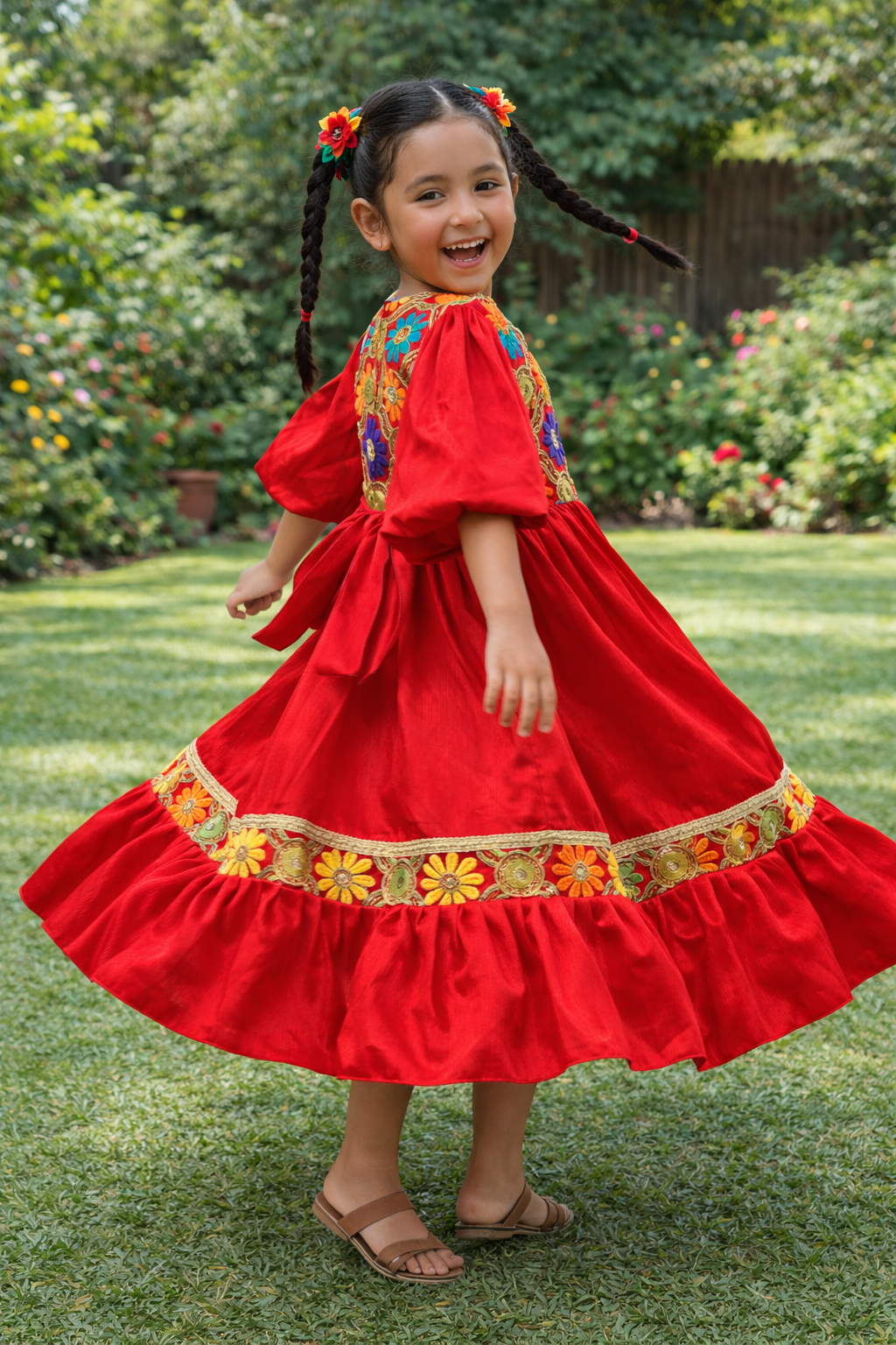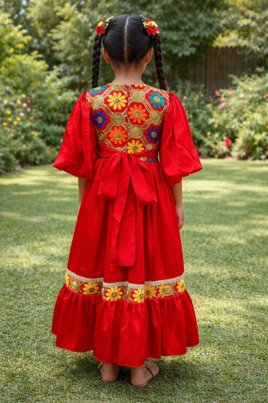 Multicolor Print Girls Hugallaila Dress | Traditional Dress Red