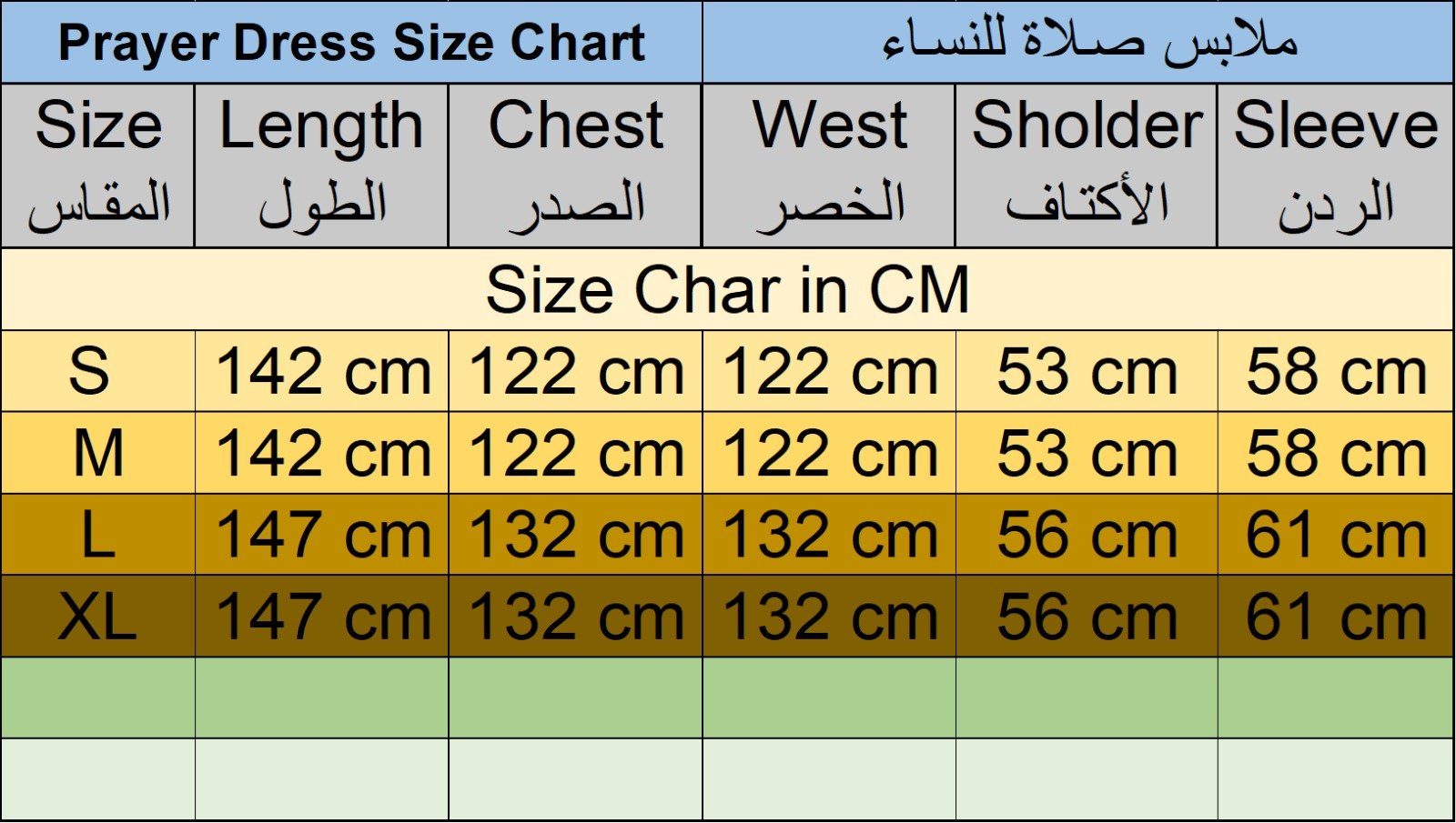 ملابس صلاة قماش ريون ناعم متوفر فقط مقاس سمول وميديوم طول مقاس سمول 54 انش طول مقاس ميديوم 56انش