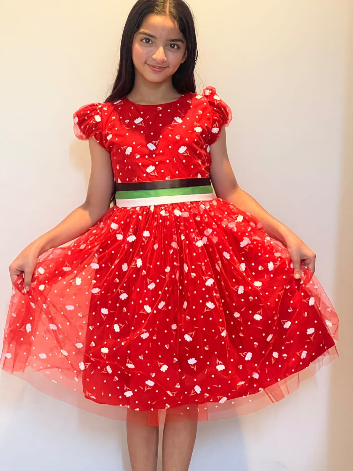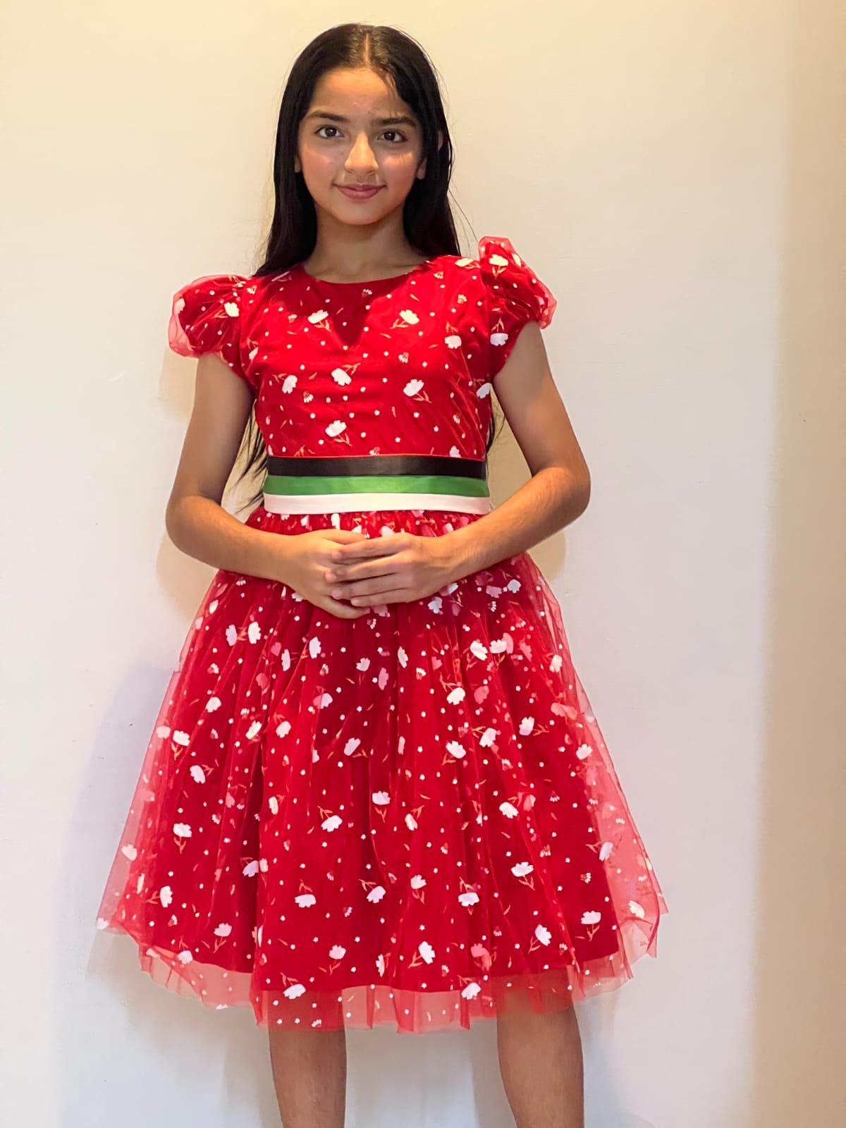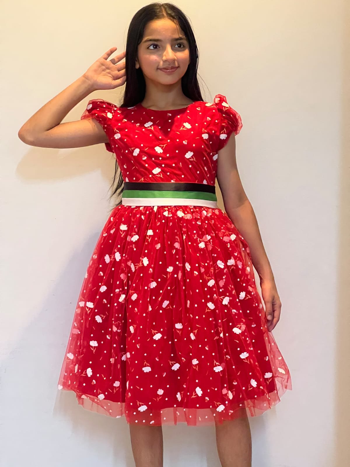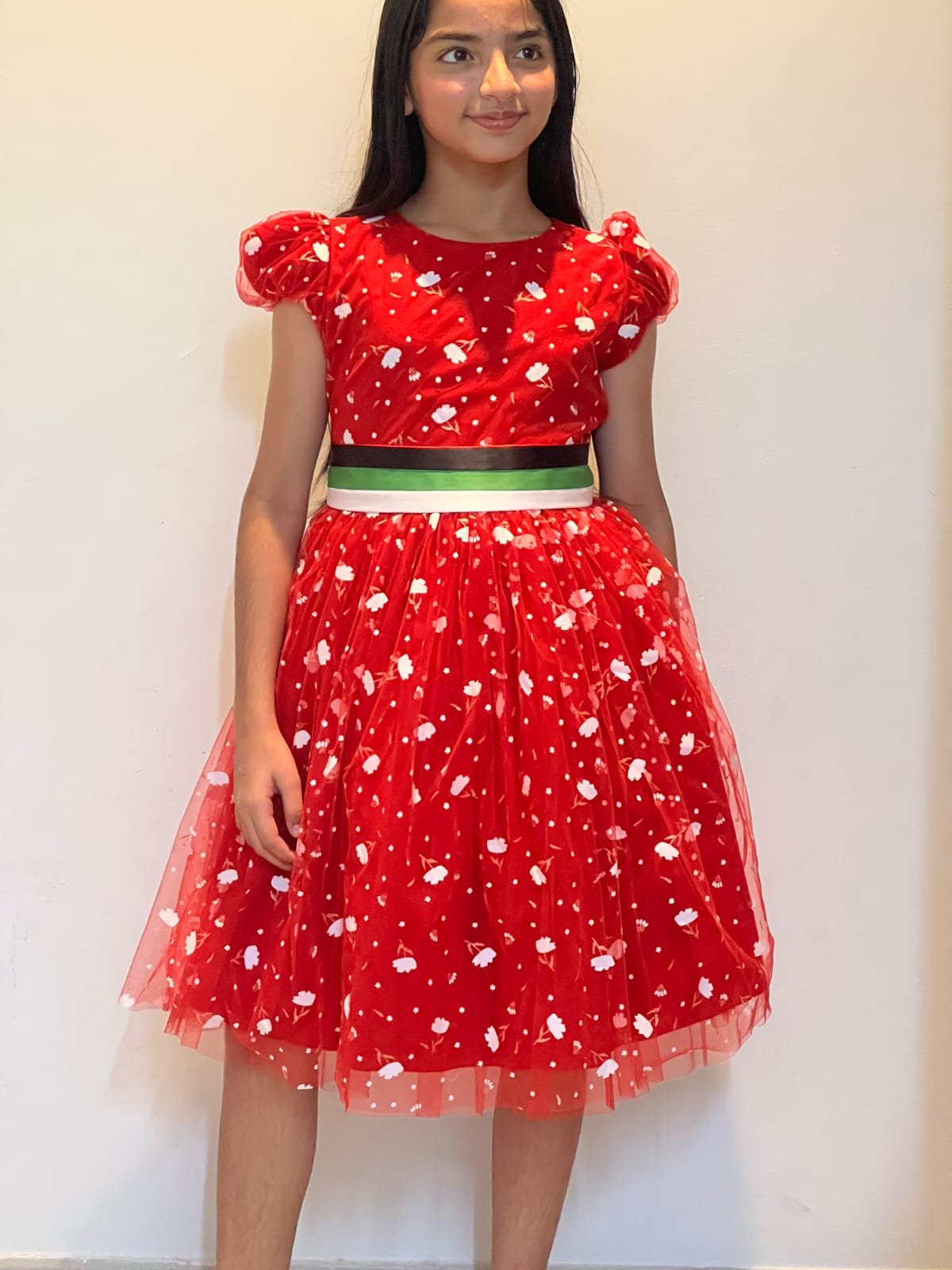 Red Dot Tule UAE National Day Flag Dress For Girls