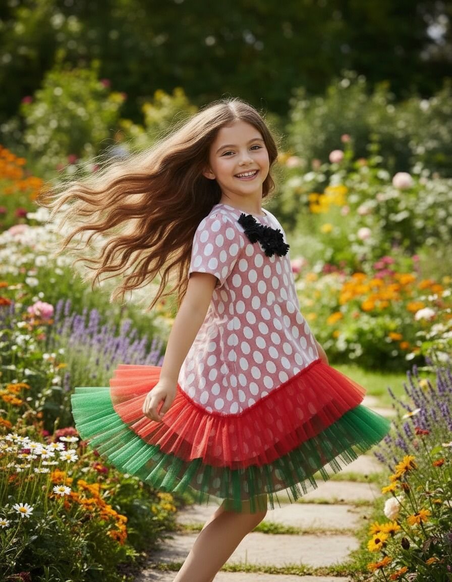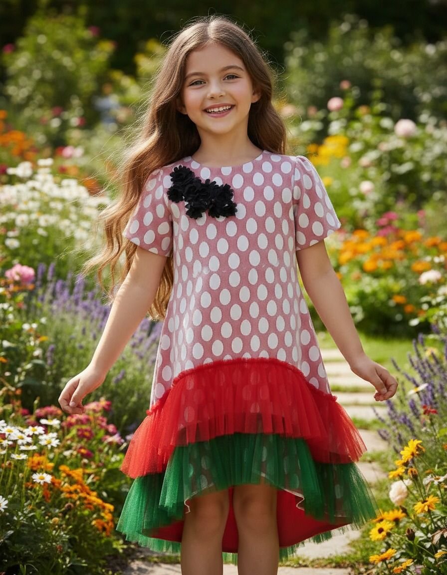 Red Dot Tulle UAE National Day Dress Flag For Girls