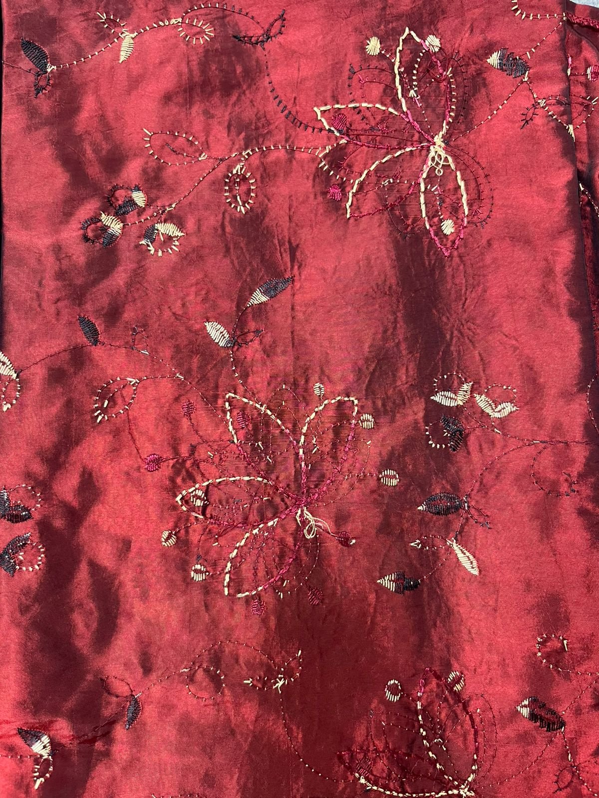 Tafta Fabric with wonderfull embroidery Maroon colour, with Off white soft Crepe under Abaya