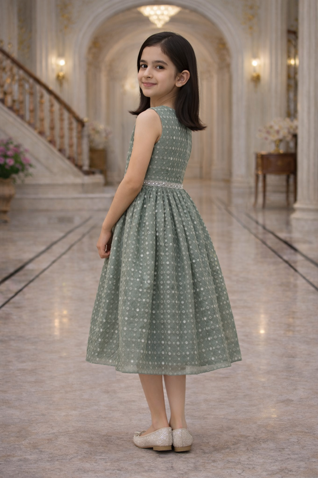 Sleeveless Mirror Party Dress For Fashionable Girls Light Green