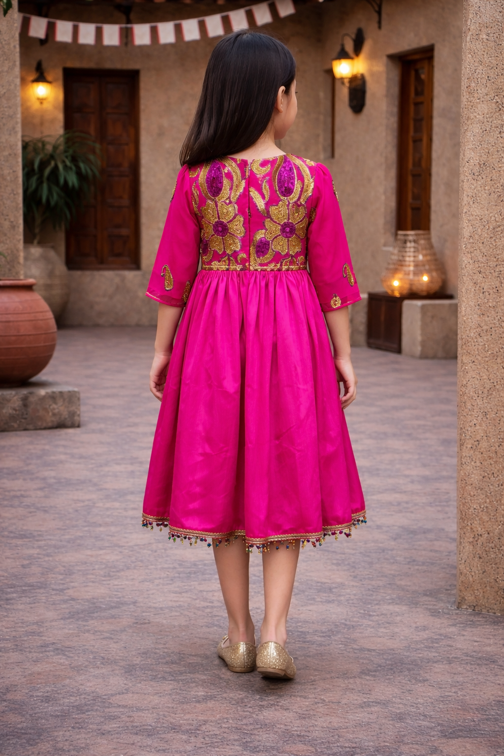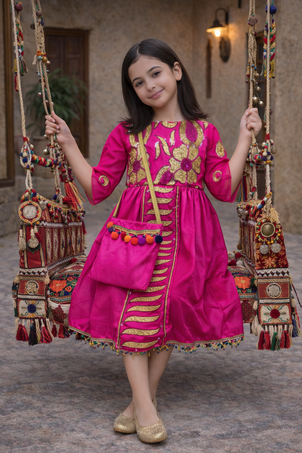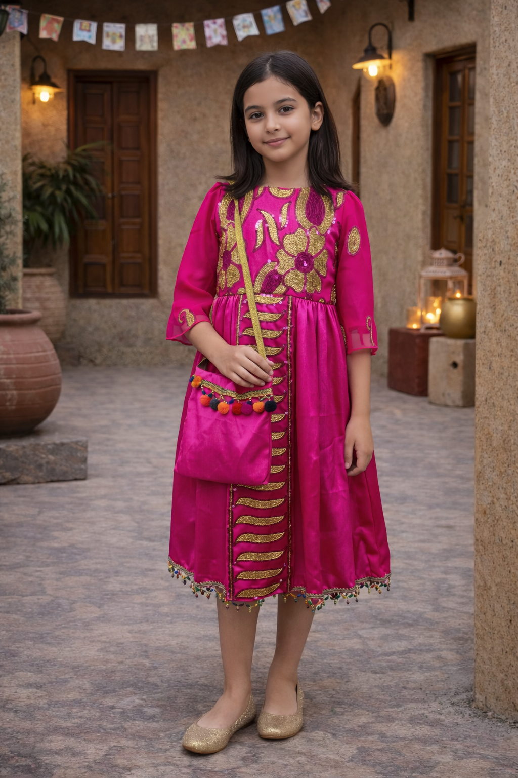 The hugallaila dress is a stunning and elegant Emirati Girls Traditional Dress that has been worn for centuries. It is characterized by its flowing silhouette, vibrant colors, and intricate embroidery. The dress is typically made from lightweight fabrics like silk or chiffon, which makes it perfect for the hot UAE climate. The hugallaila dress is often adorned with sequins, beads, and other embellishments, which add a touch of luxury and glamour.