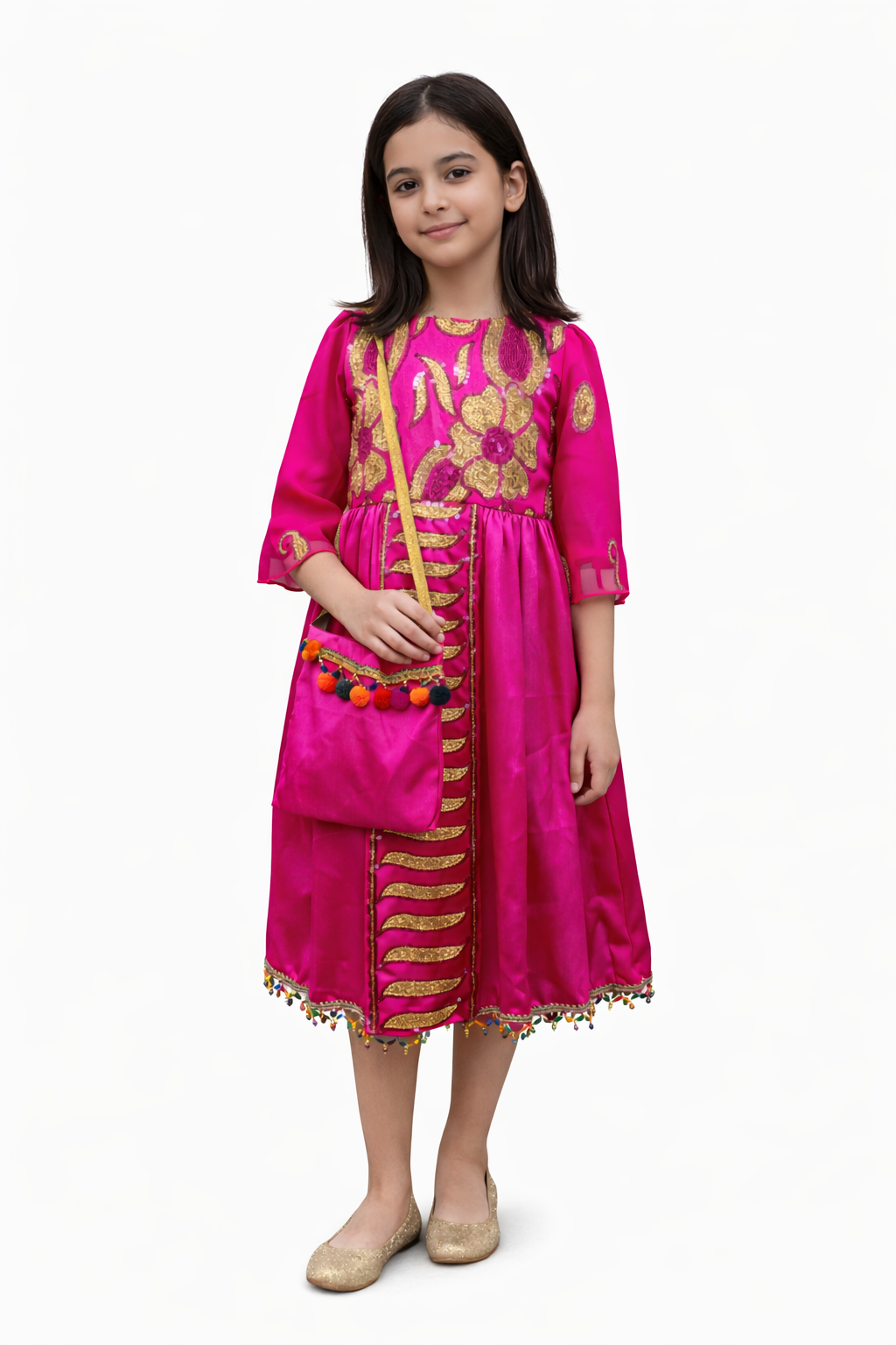 Girls Hugallaila Dress | Traditional Dress Pink with Vertical Stripes