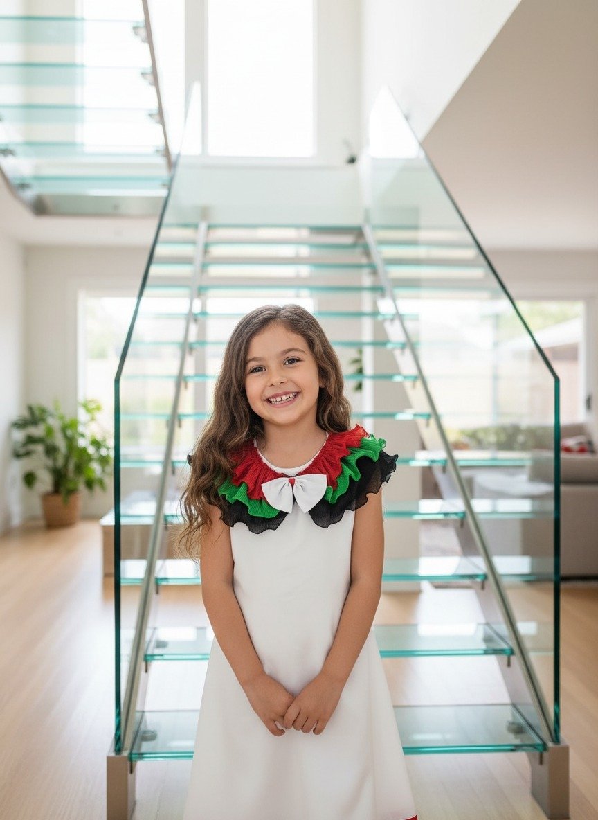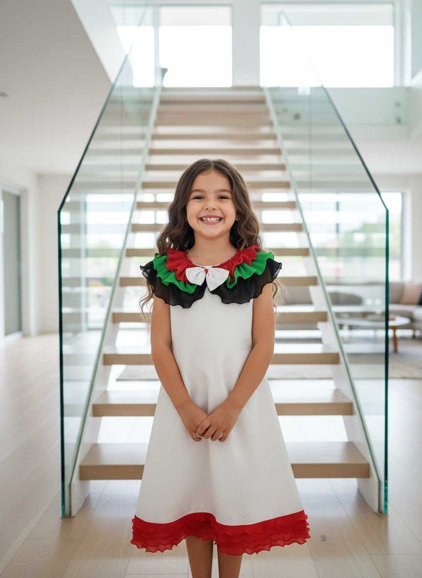 UAE National Day Dress For Girls – Elegant White & Flag Trim