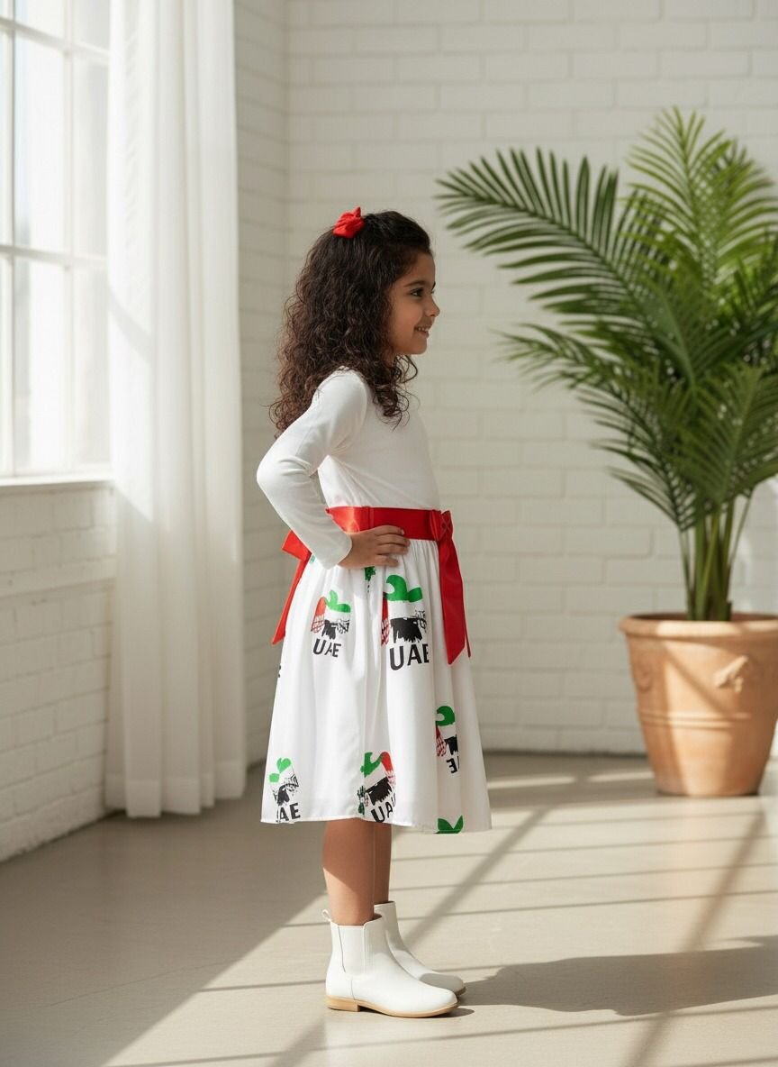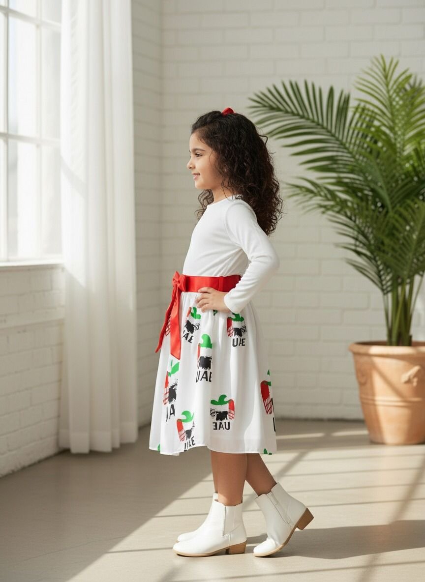 UAE National Day Dress For Girls Red Bow & Calligraphy